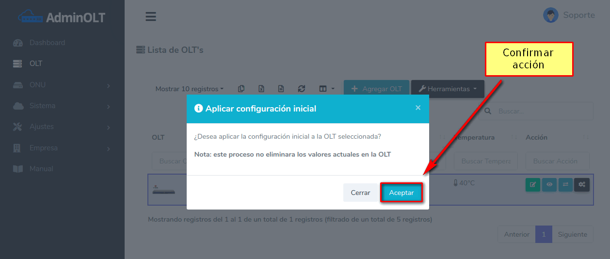 Al aplicar esta acción AdminOLT creará las comunidades que registró al momento de agregar la OLT en el sistema.