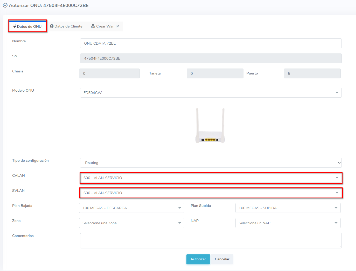 Para crear una WAN IP al momento de autorizar, se recomienda leer el siguiente manual que habla sobre el tema más a fondo; Configuración WAN IP C-Data