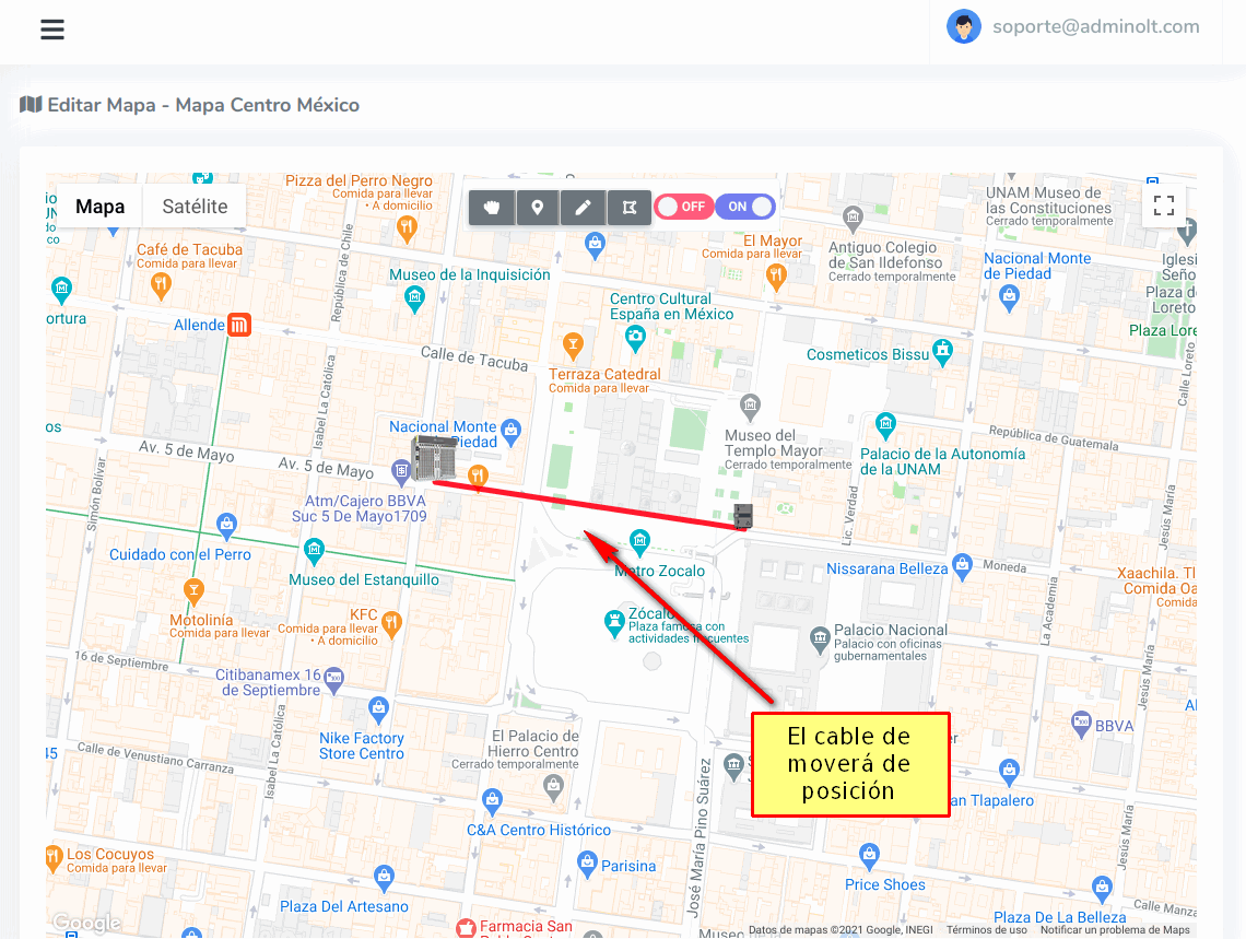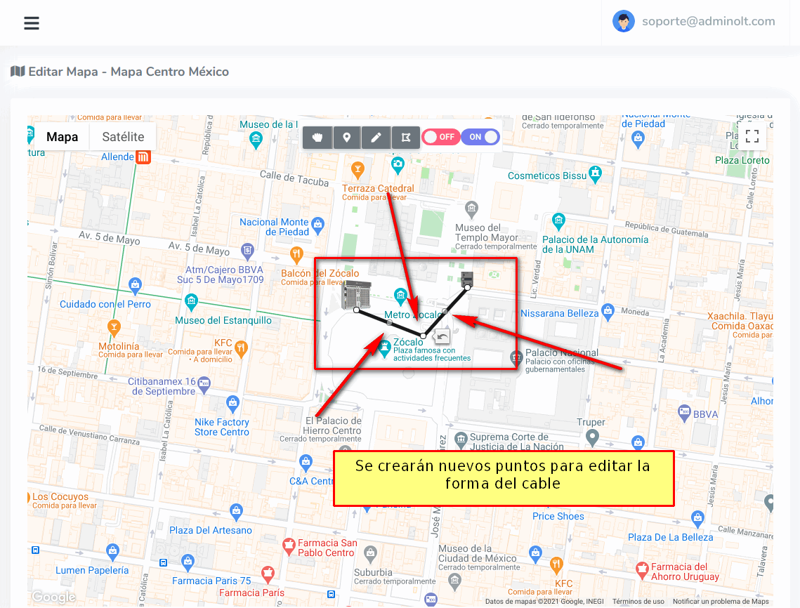 Al hacer los pasos anteriores la forma de cable de editara, de igual manera se crearán mas puntos donde podemos seguir cambiando la forma del cable.