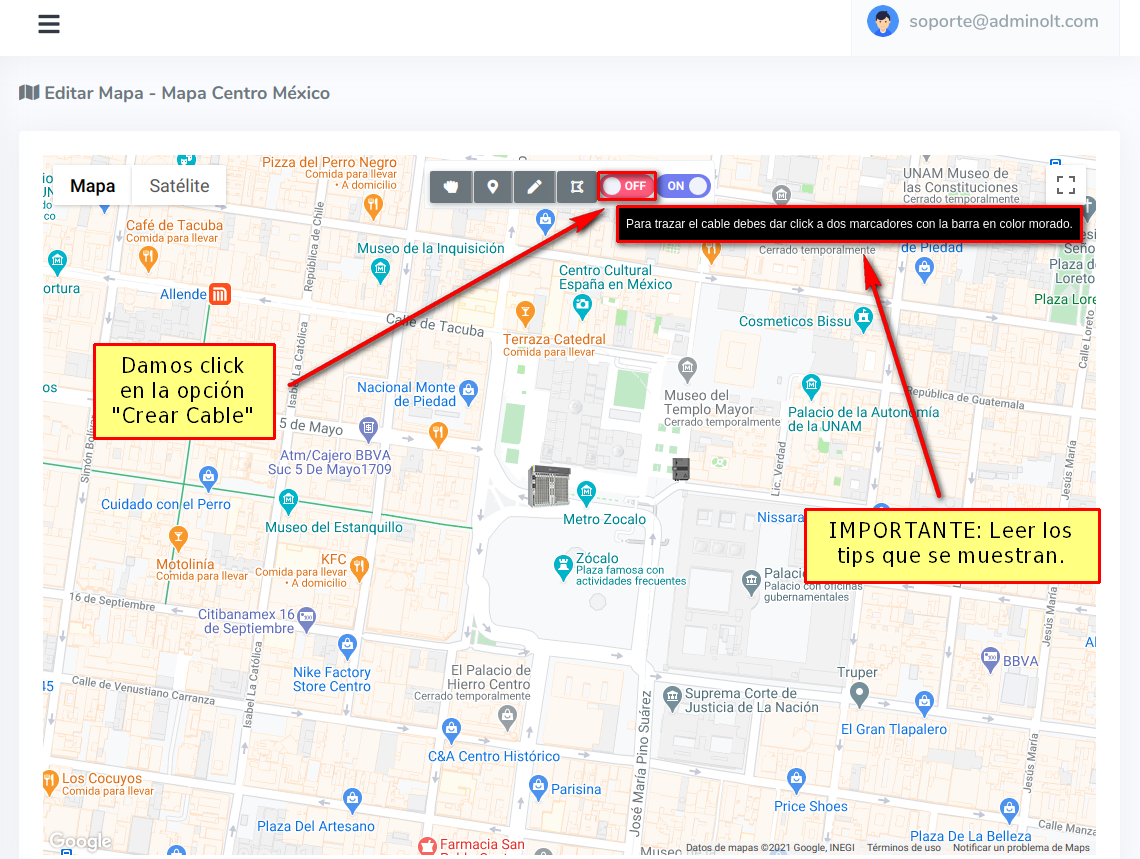 Un cable es un conector entre 2 marcadores, es importante que antes haya registrado los tipos de cables ya que servirá para futuras actualizaciones.