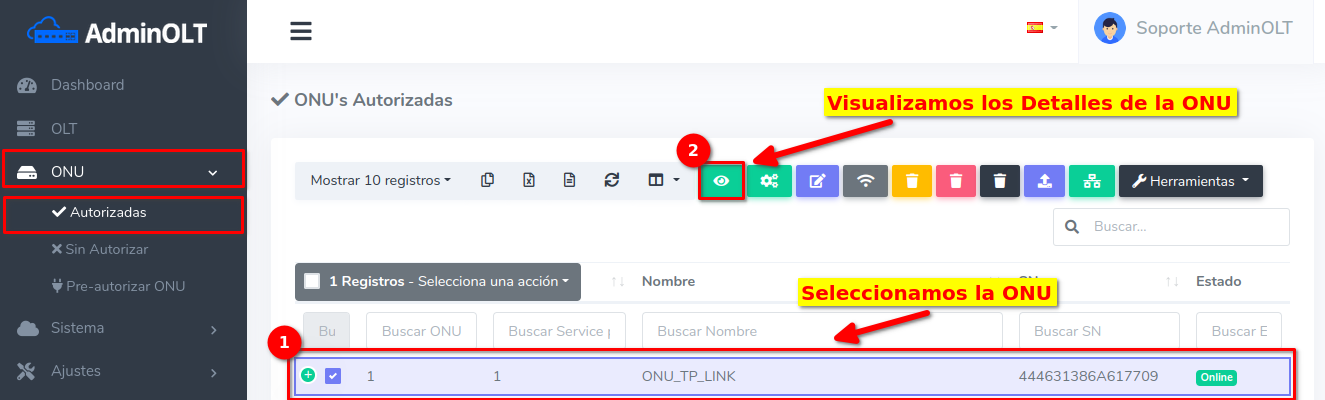 Dar click en el texto Editar en OLT que se encuentra en el botón con la leyenda Editar.