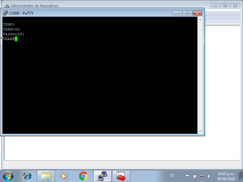 2 Debe verificar en que puerto COM se ha conectado la OLT. Para ello debe ingresar al Administrador de dispositivos de Windows y ubicar la parte de Puertos (COM Y LPT). Ahi se mostrará en que puerto se ha asignado. Para este ejemplo, fue en el puerto COM3