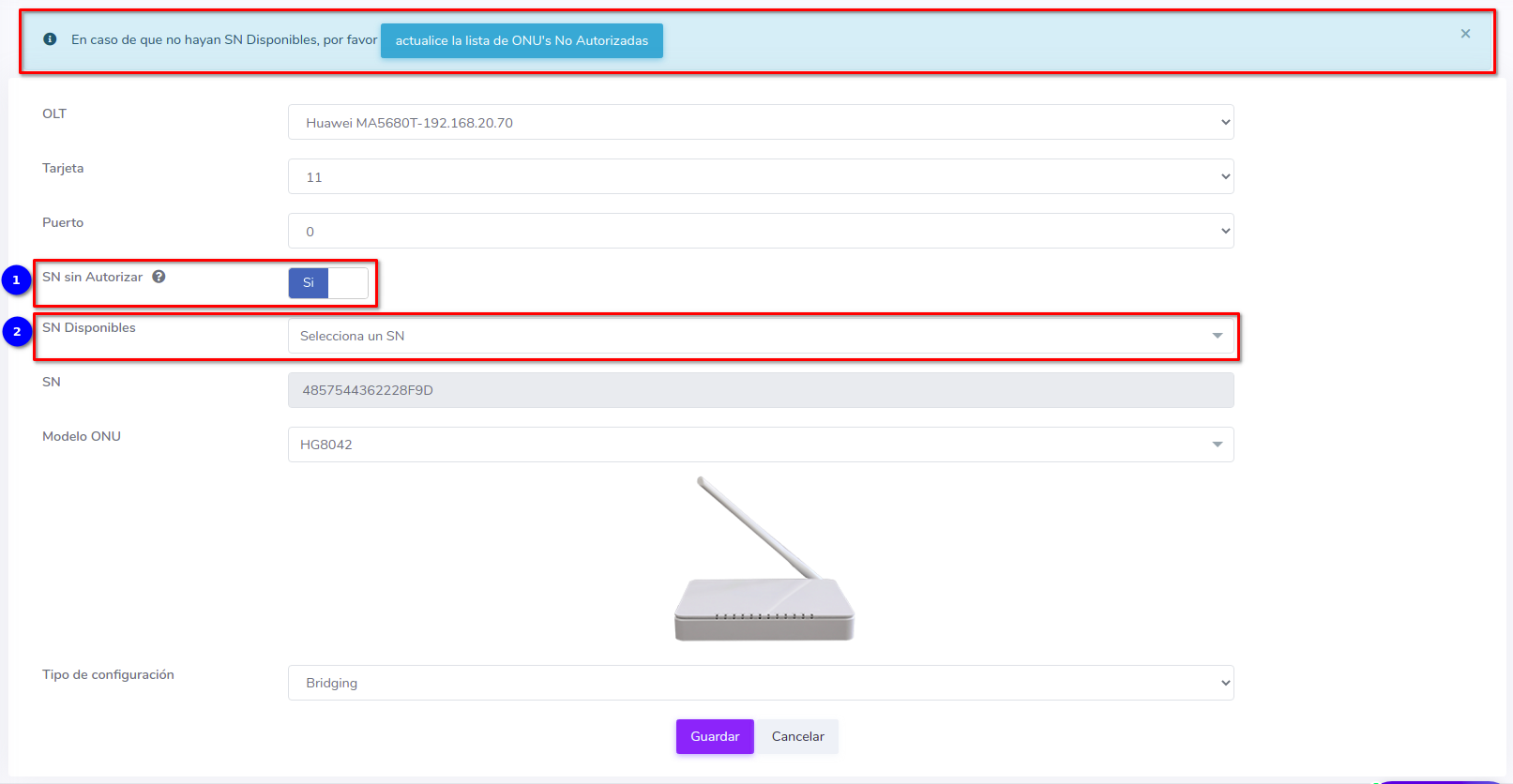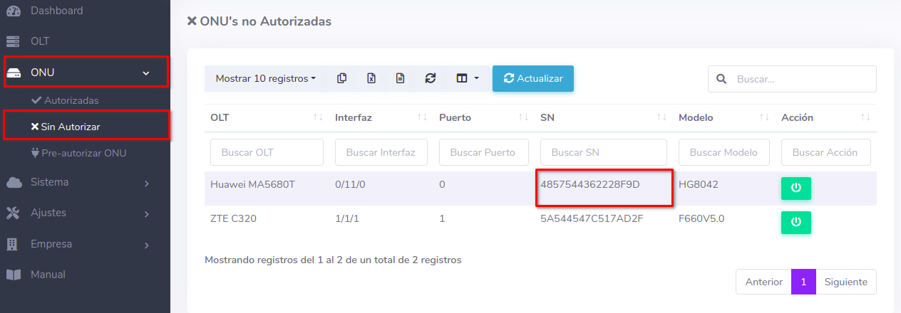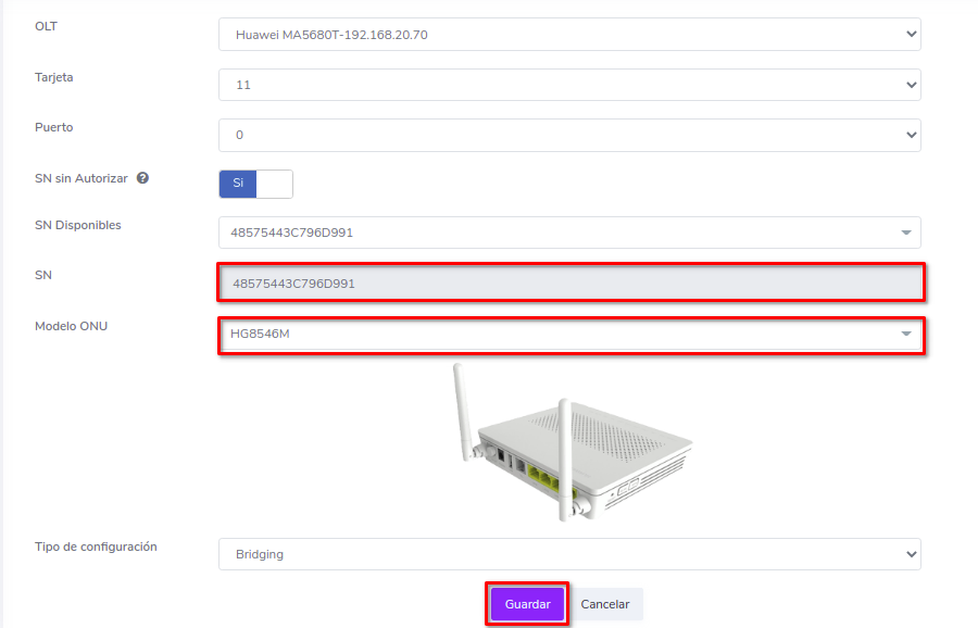 Editar ONU por Numero de Serie (SN)
