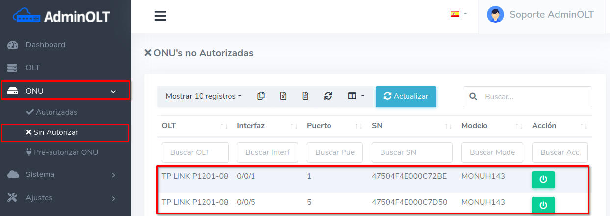 En AdminOLT podemos editar información de una ONU Autorizada en la OLT, supongamos que alguna de las ONUs que tenemos autorizadas en el sistema se estropea. Tomaremos como ejemplo esta situación para explicar el propósito de esta función. Así que en ese caso en AdminOLT al editar ONU por SN podemos tomar información de alguna ONU no Autorizada y usarla, sin perder la configuración inicial que teníamos.