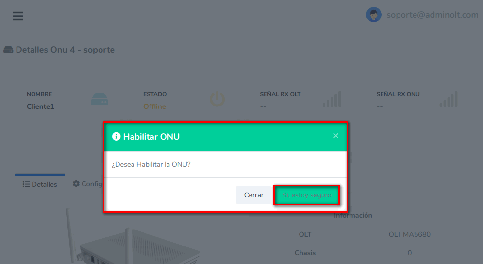 Para ver como deshabilitar una ONU puede leer el apartado ¿Como puedo deshabilitar una ONU Autorizada?, de igual manera para ver como habilitar una ONU puede leer el apartado ¿Como puedo habilitar una ONU Autorizada?