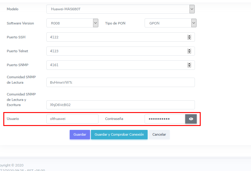 AdminOLT es un sistema alojado en la nube por lo que se necesita que su equipo OLT se accesible desde internet, por lo que es recomendable que se cambie la contraseña que viene defecto.